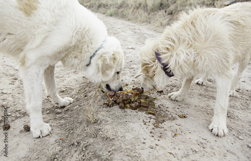 Fototapeta premium Dogs eating together