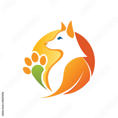 © Ifti Digital, Obraz premium Dogs paw and its corresponding paw print on a plain white backdrop, Abstract logo representing a pet's playful nature, minimalist logo