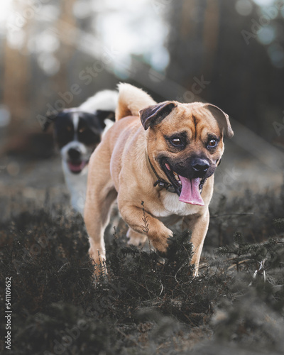 © lorenzo, Fototapeta premium dogs playing in the woods
