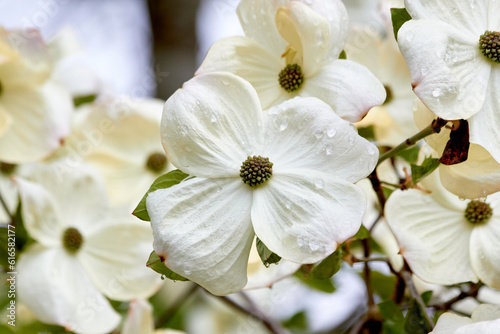 © couragesings, Fototapeta premium Dogwood Flowers and Raindrops