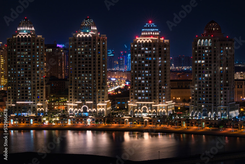 © g.photobox, Fototapeta premium Doha City Skyline Residential Towers at Night