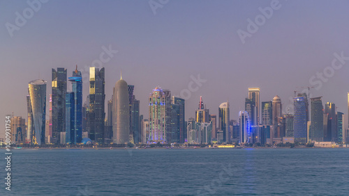 Obraz premium Doha downtown skyline day to night timelapse, Qatar, Middle East