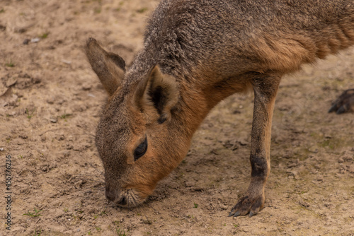 Fototapeta premium Dolichotis patagonum animal on dry meadow in summer day