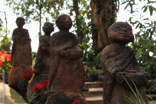 © noomcm, Obraz premium Doll clay monk in the garden.