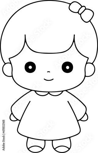 Fototapeta premium Doll vector illustration. Black and white outline Doll coloring book or page for children