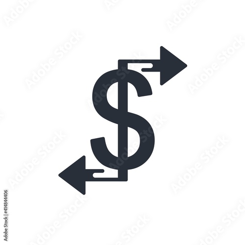 Fototapeta premium Dollar and movement arrows. Financial transfer. Vector icon isolated on white background.