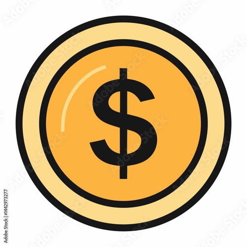 © TahrinAkther, Obraz premium Dollar coin icon vector on white background.
