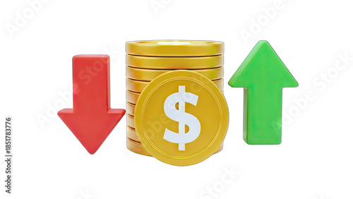Obraz premium Dollar Coin Stack with Arrows: Financial Growth & Decline