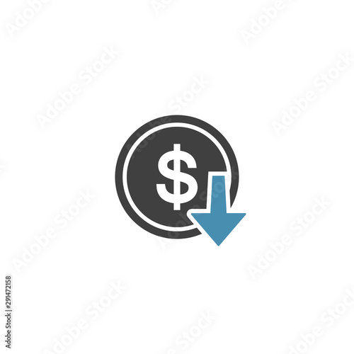 © stas111, Obraz premium Dollar cost decrease icon on a white background. Vector illustration