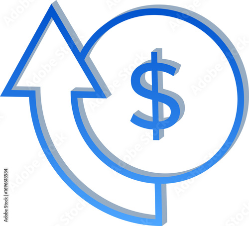 © kamrulHasan, Obraz premium Dollar Currency Icon with Upward Arrow Isolated on Transparent Background