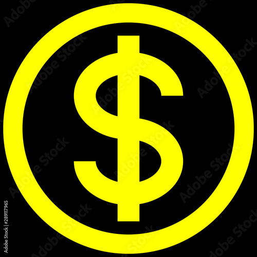 © visart, Obraz premium Dollar currency sign symbol - yellow simple inside of circle, isolated - vector