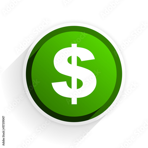 Obraz premium dollar flat icon with shadow on white background, green modern design web...