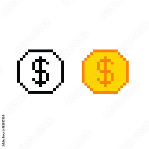 © veronchick84, Fototapeta premium dollar icon vector pixel dollar coin