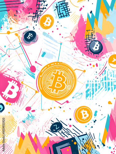 Fototapeta premium dollar production, coins, stock graphs, and Bitcoin in various creative graphic styles
