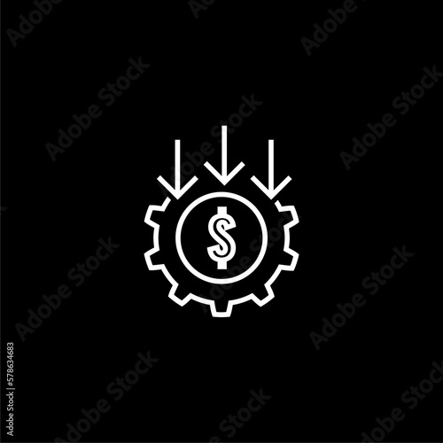 © Jovana, Naklejka premium Dollar rate decrease icon isolated on black background. Money symbol with down arrow.