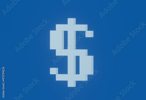 Obraz premium Dollar sign, blue background. Pixel art stylized
