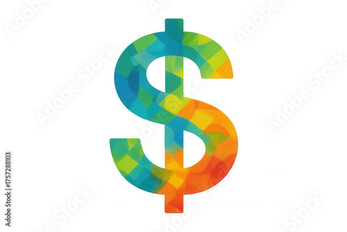 © Krtola , Fototapeta premium Dollar sign with colorful abstract low poly texture representing finance, currency, economy, future, innovation, and global business concepts