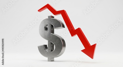 Fototapeta premium Dollar symbol with red arrow pointing downward indicating financial loss....