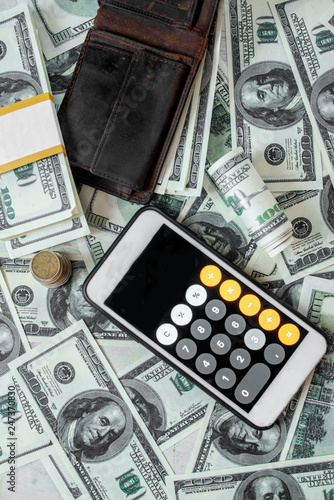 Fototapeta premium dollars and a calculator on a white background. Finance and business concept