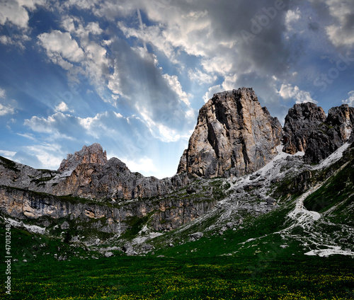 © vencav, Obraz premium Dolomite peaks, Rosengarten,Val di Fassa, Italy Alps