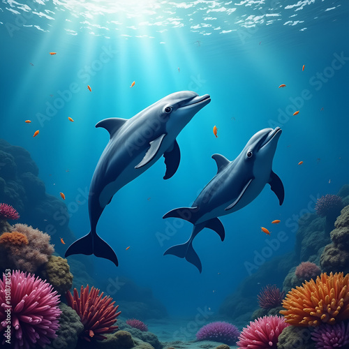 © rabia, Fototapeta premium dolphin and diver