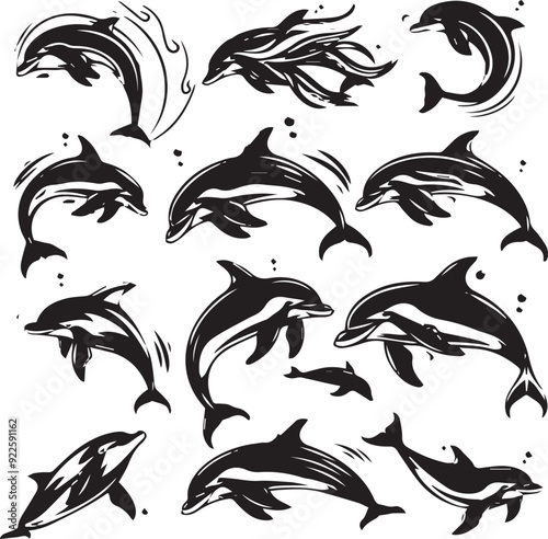Naklejka premium Dolphin Artistic Silhouette Elements in Black