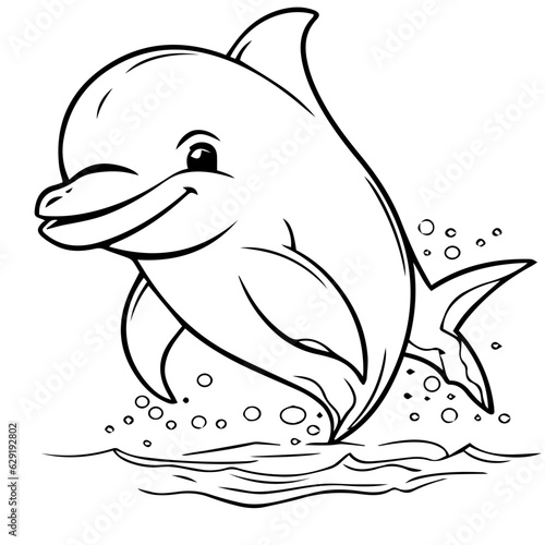 © DLC Studio, Obraz premium Dolphin coloring page outline drawing