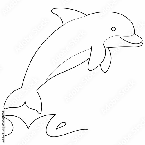 Obraz premium Dolphin coloring page simple and minimal line art illustration on white...