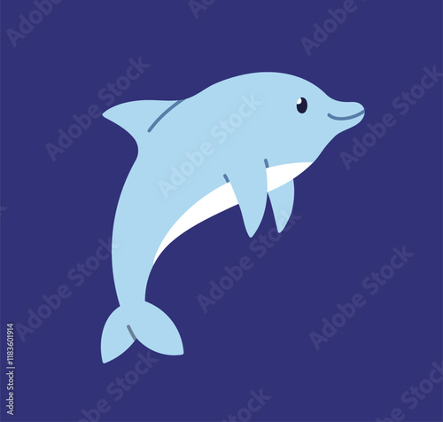 Fototapeta premium Dolphin, cute marine animal. Happy aquatic fauna, mammal swimming underwater...