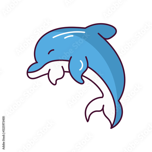 Fototapeta premium Dolphin doodle color line icon with white background vector stock illustration