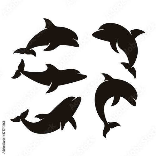 Fototapeta premium Dolphin fish animal silhouette. Vector illustration