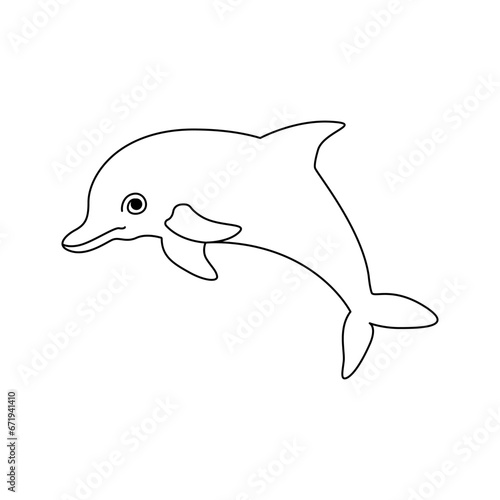 Fototapeta premium Dolphin fish jumps out of the water continuous one line outline vector drawing illustration