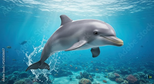 Naklejka premium Dolphin gracefully swimming in a vibrant underwater ecosystem scene