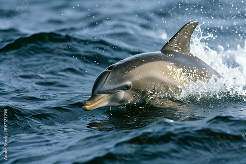 Fototapeta premium Dolphin gracefully swimming in shimmering ocean waters. Generative AI image