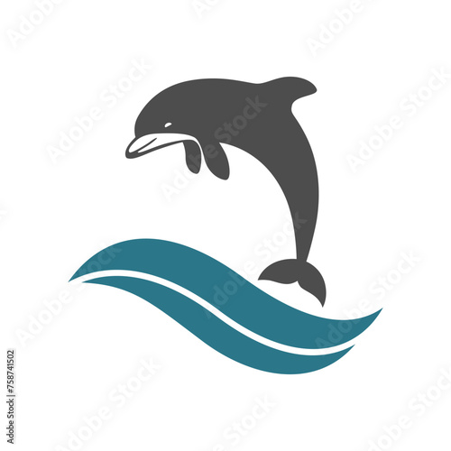 Fototapeta premium Dolphin graphic icon. Dolphin and wave isolated sign on white background. Sea...