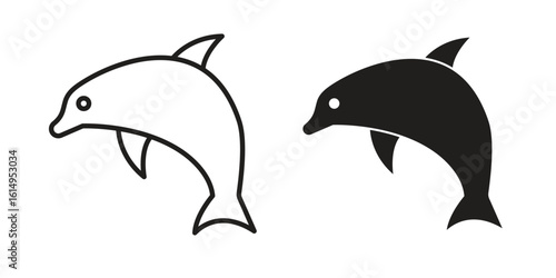 © Franklin, Fototapeta premium Dolphin icon set, line and black glyph style for food app website.