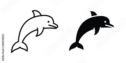 Fototapeta premium Dolphin icons in different styles. Simple icon design