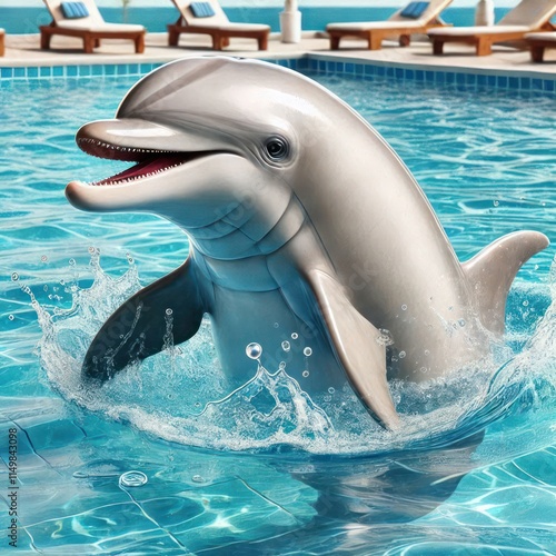 © Andbiz, Naklejka premium Dolphin in a pool with splashes of water.