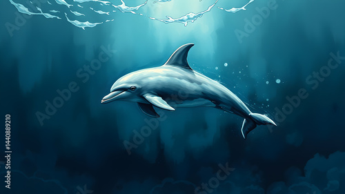 Fototapeta premium Dolphin in the deep sea, watercolor style. Generative AI