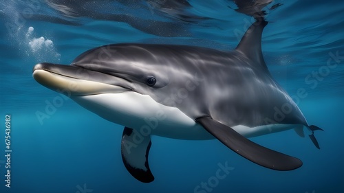 Naklejka premium dolphin in the water A large trophy bull dolphin fish swims quickly close to...