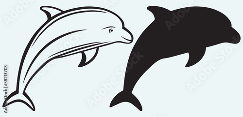 © Kreatiw, Naklejka premium Dolphin isolated on blue background