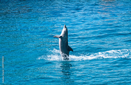 © unclepodger, Obraz premium Dolphin jumping above blue water