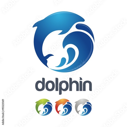 © adynue, Fototapeta premium Dolphin jumping above waves. Dolphin With Wave Creative Logo Icon