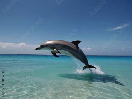 Obraz premium Dolphin jumping from the sea surface
