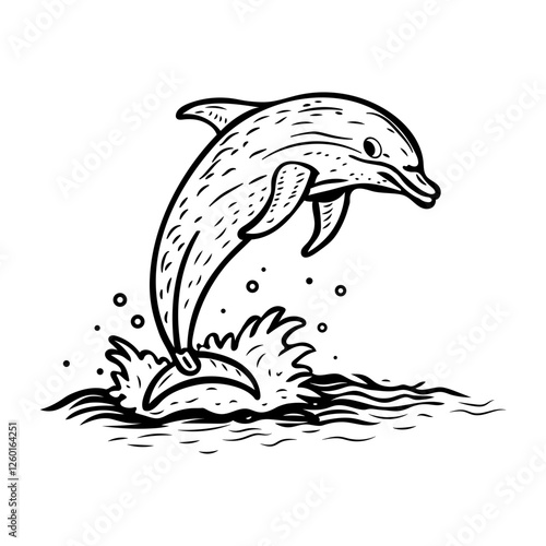 © creativestall, Naklejka premium Dolphin jumping from water icon in vintage style