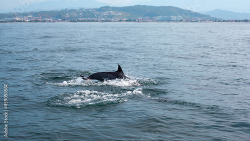Fototapeta premium Dolphin jumping in blue water