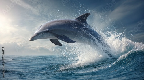 © Fandi Comp, Fototapeta premium Dolphin jumping ocean waves