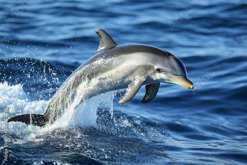 © Michael, Naklejka premium Dolphin jumping out of the water on a sunny day