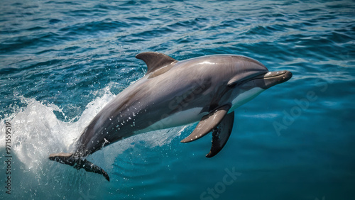 Fototapeta premium dolphin jumping out of water creating a spray of water droplets.