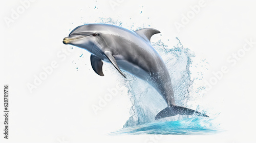 Naklejka premium Dolphin jumping out of water, dolphin isolated on white background, dolphin...